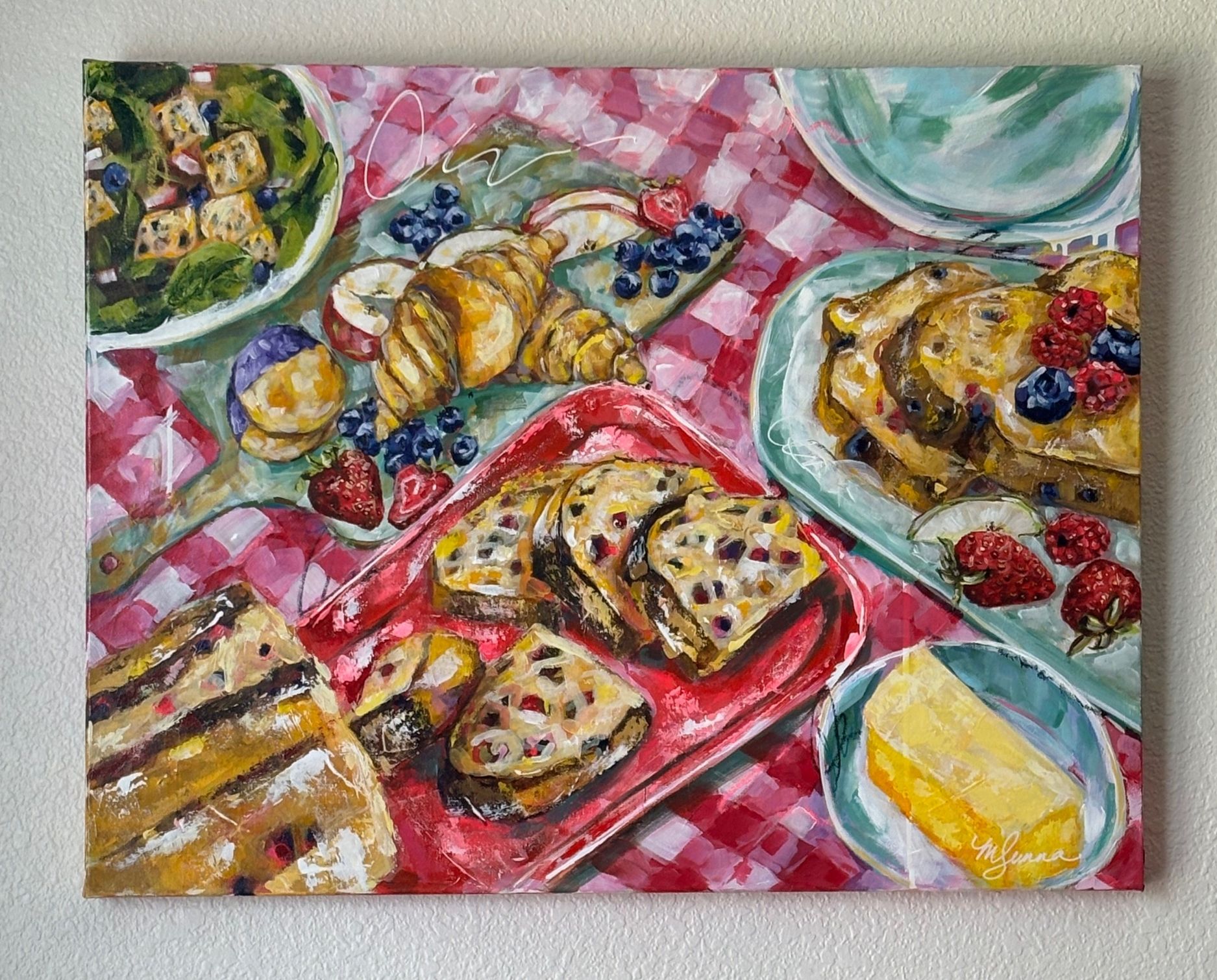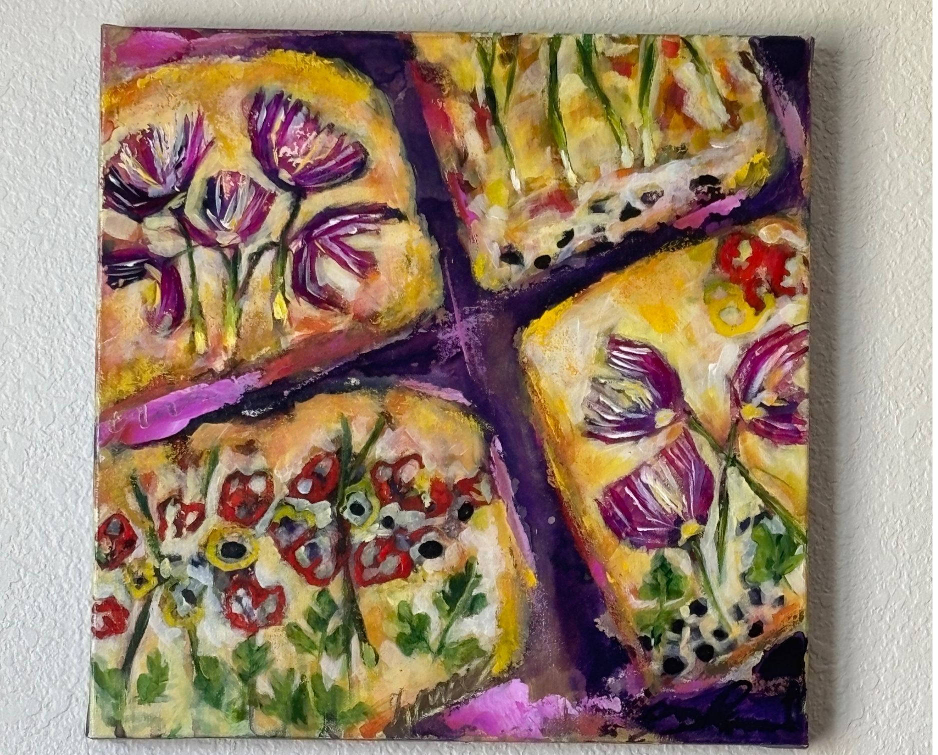 I create bold, figurative art that celebrates both the sweet and savory moments of life. Through vibrant color, playful imagery, and heartfelt detail, my work captures the richness of everyday joy. Food, in particular, is one of my favorite ways to share the deliciousness of life. This collection marks my joyful introduction to the art world—a midlife leap into the creative career my heart has always craved.